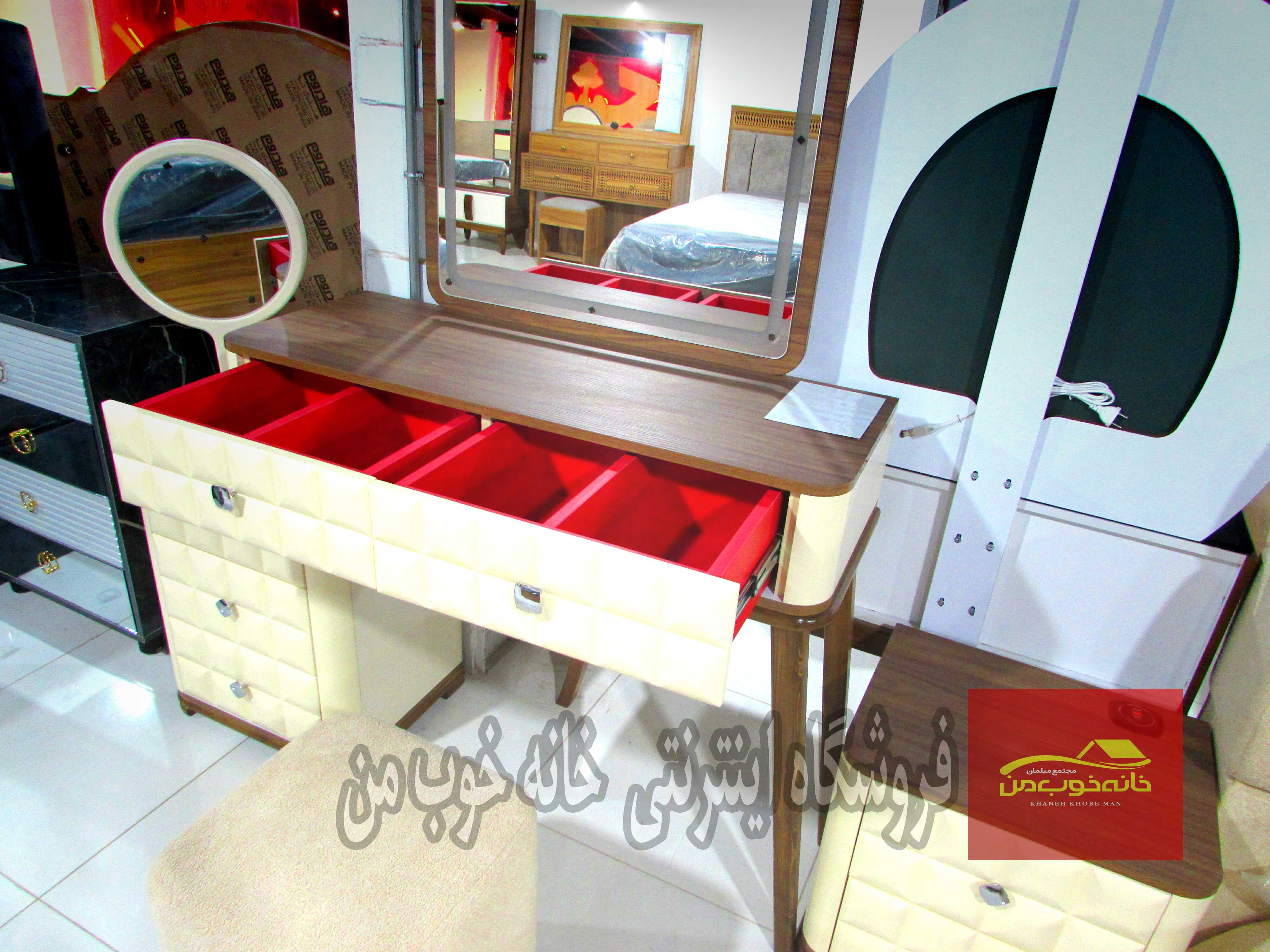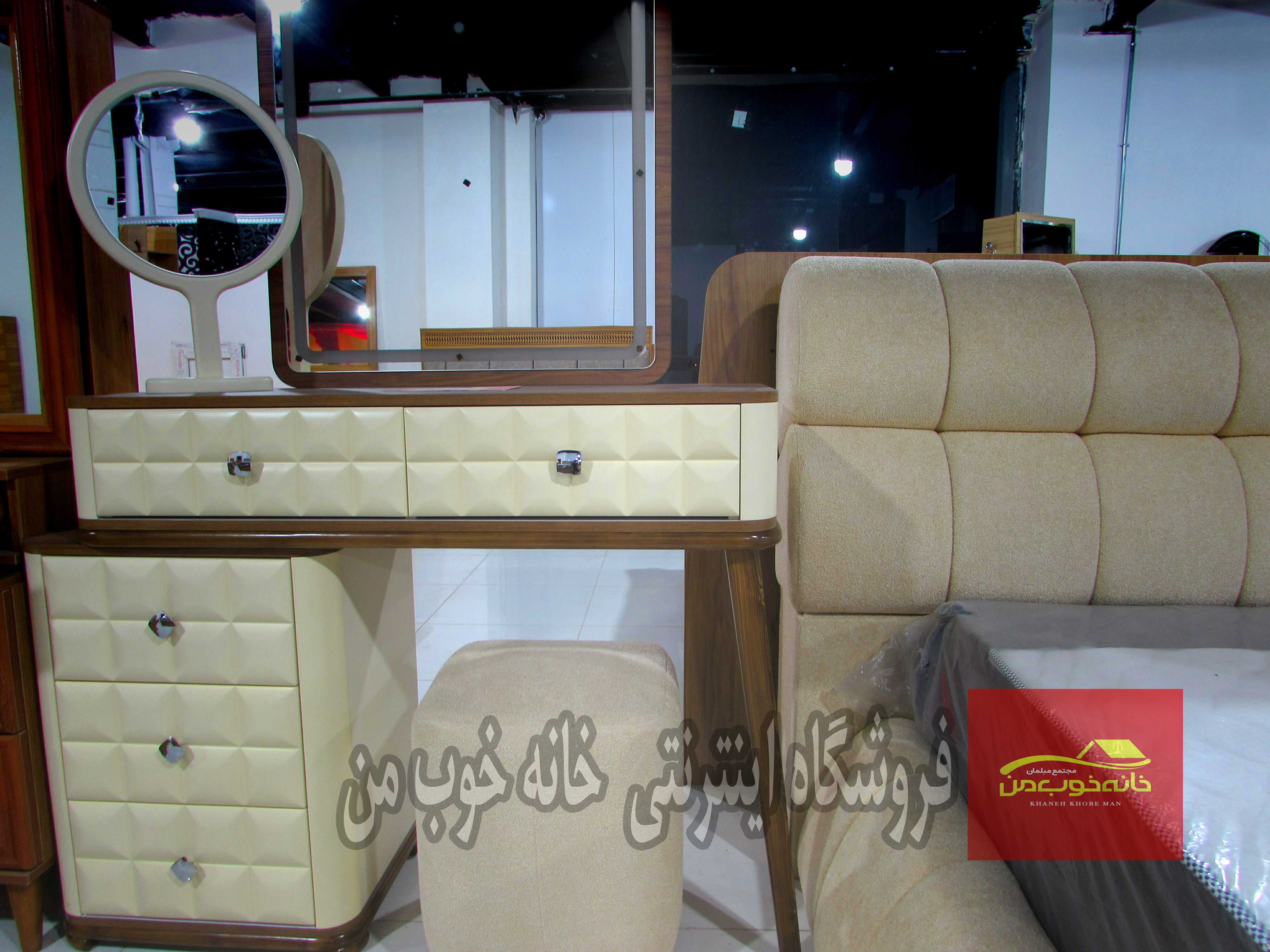 شامل تخت دو نفره، میز آرایش، آینه، پاتختی و فایل ۴ کشو، که امکان حذف یا اضافه کردن اجزا و سفارشیسازی وجود دارد.