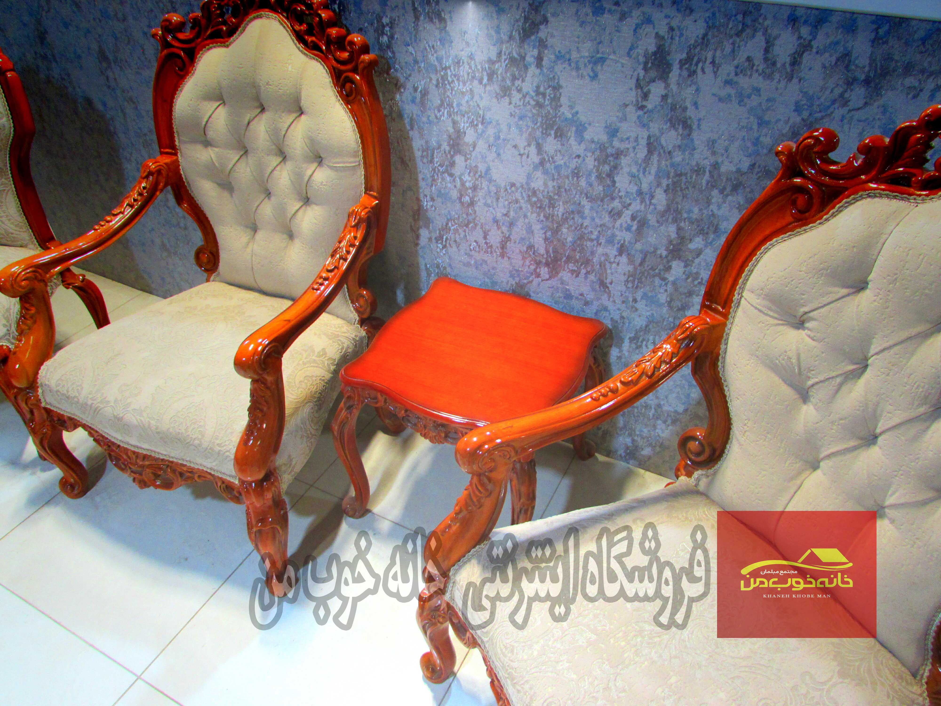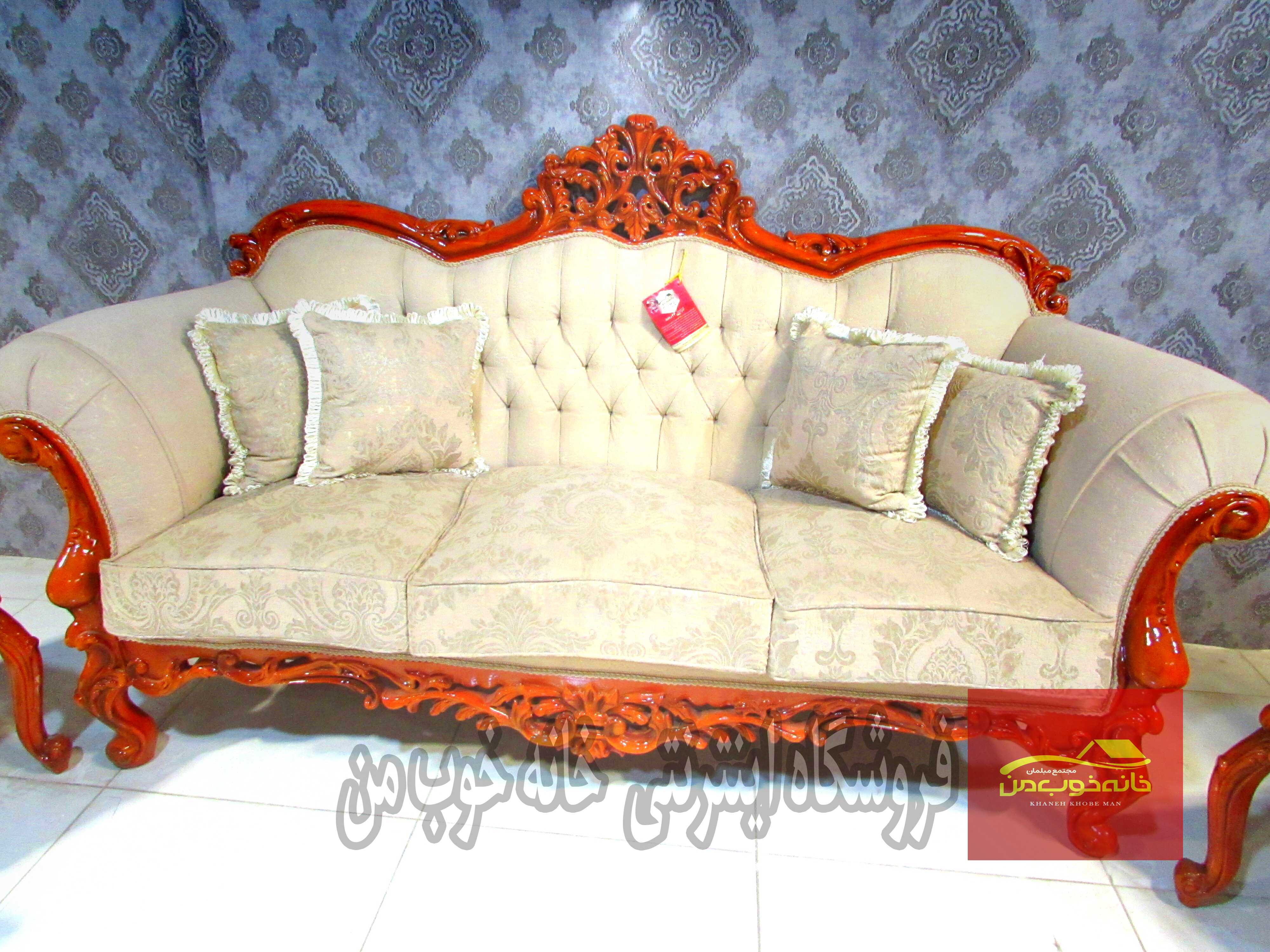 منبتکاریهای پیچیده و ظریف در تمام قسمتهای چوبی مبل، از جمله تاج، دستهها و پایهها، جلوهای اشرافی به آن میبخشند. - جنس: