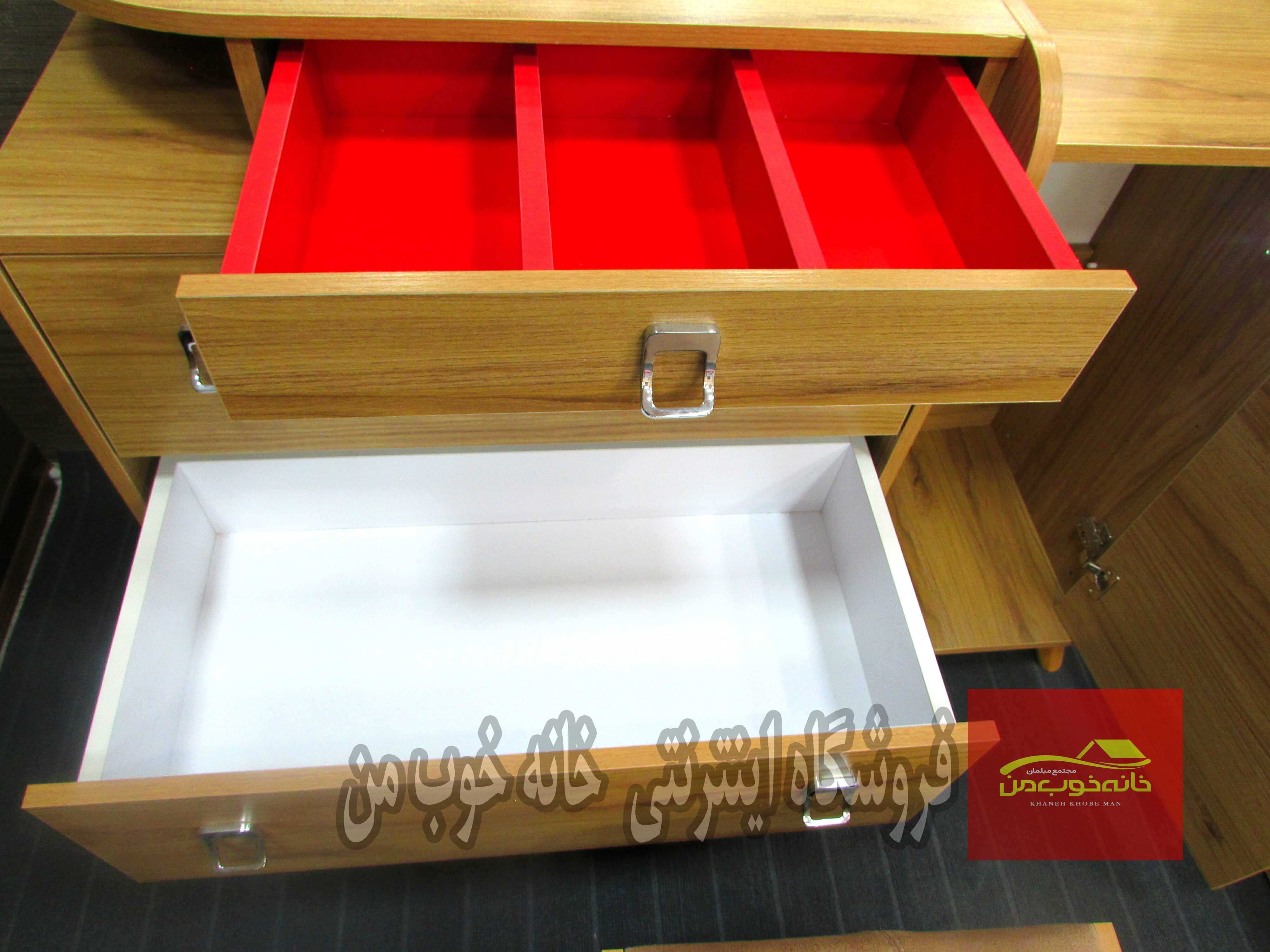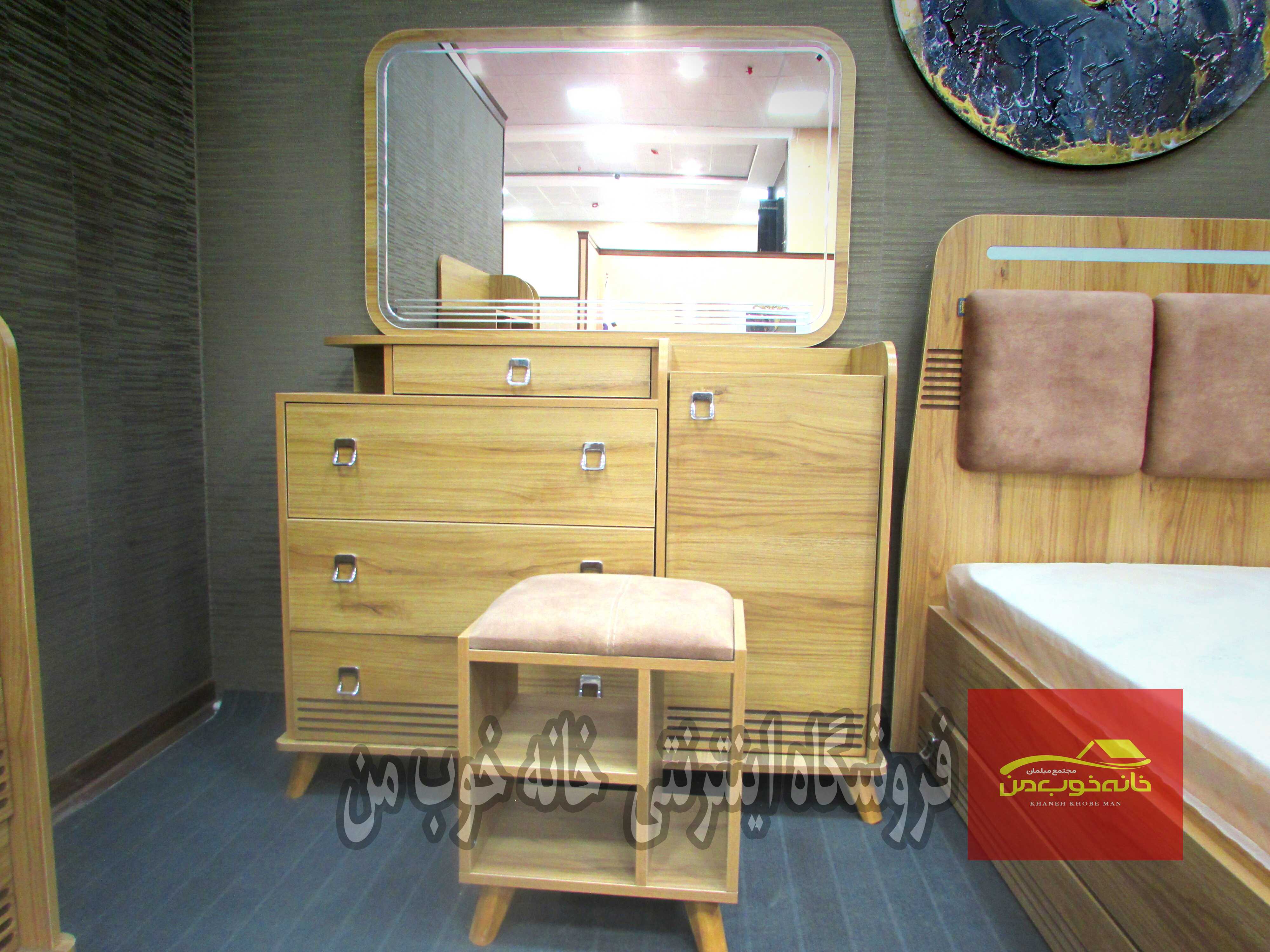 - میز آرایش: دارای کشوهای مخفی و امکان سفارش با usb بر روی پاتختی.
