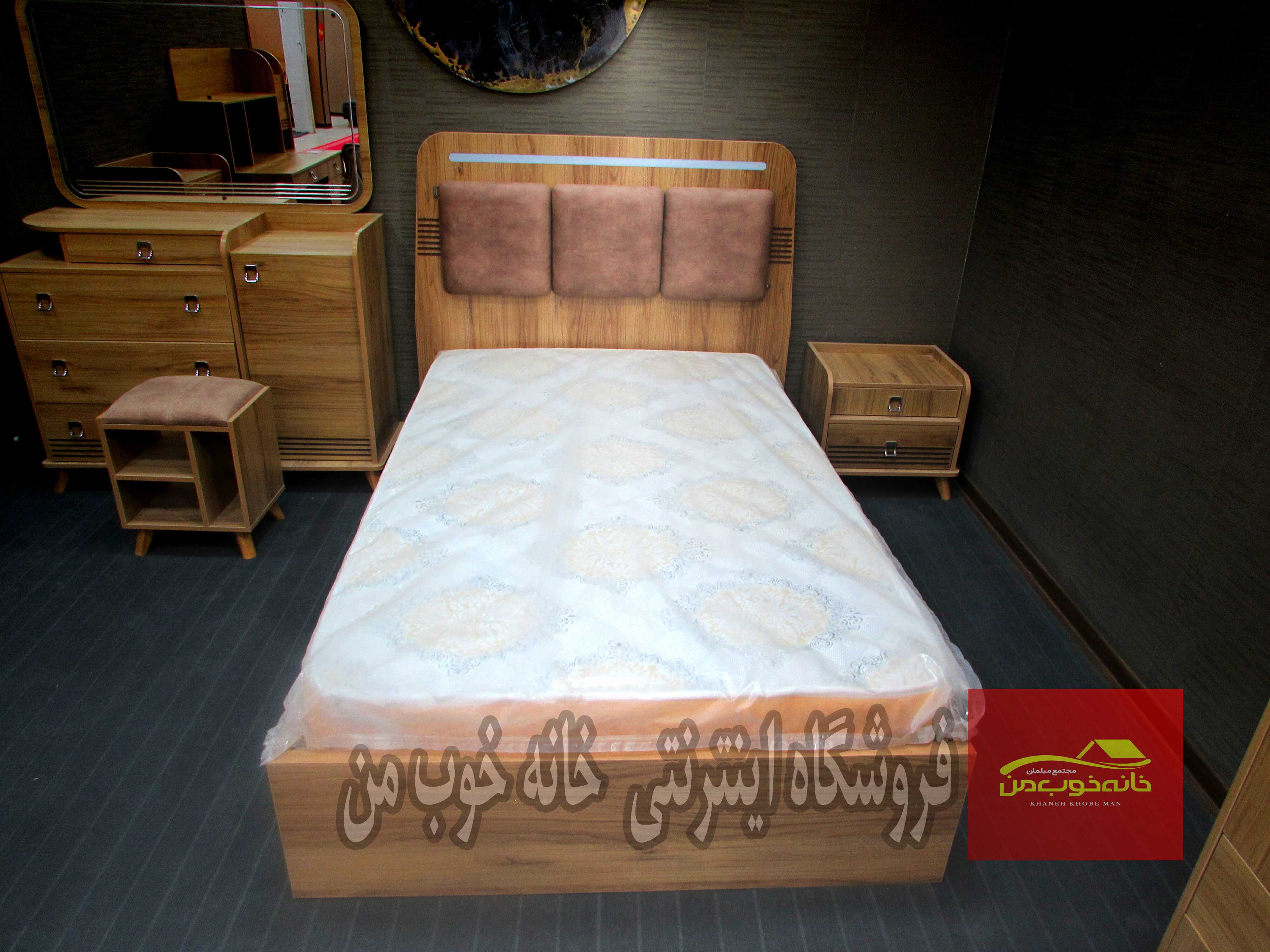 - تخت: ابعاد تخت 120*200 سانتی متر و قابلیت سفارش در عرض های مختلف (90، 140، 160، 180) را دارد.