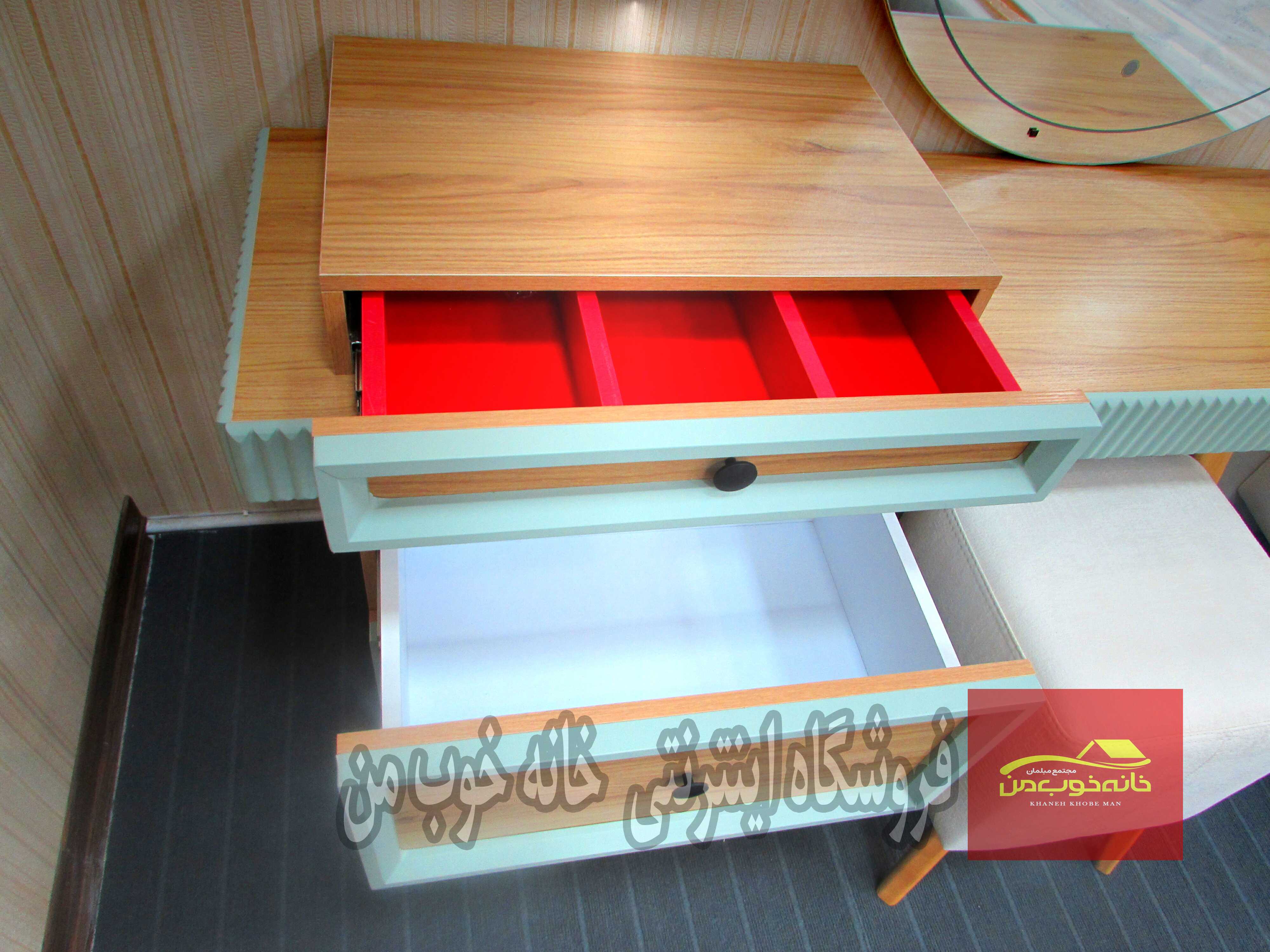 میز آرایش معمولاً دارای دو کشو و یک کشو مخصوص جواهرات است و ممکن است یک کشو مخفی نیز داشته باشد. - پاتختی: