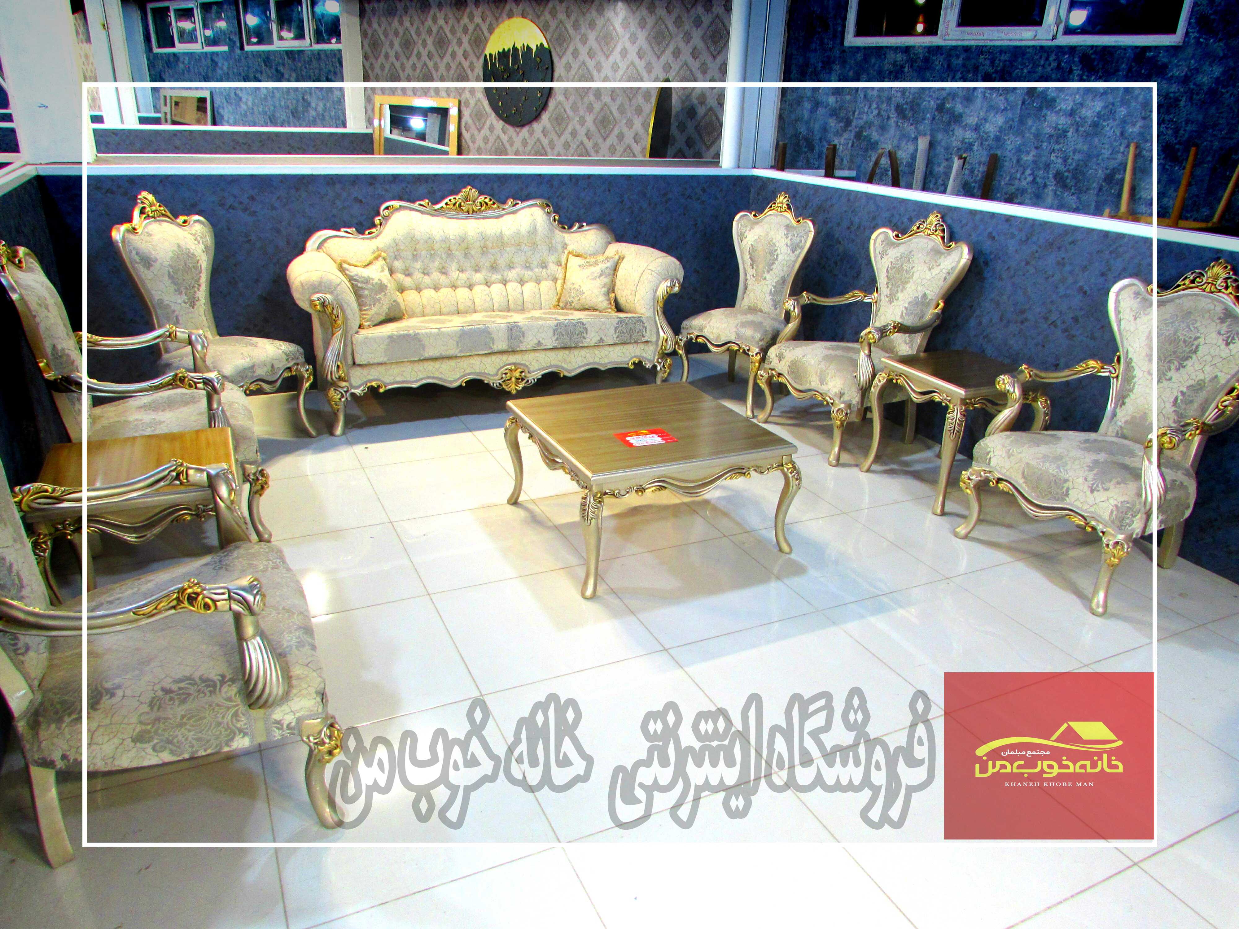 فروشگاه آنلاین خانه خوب من میگوید که این مدل مبلمان، به صورت سفارشی و با توجه به نیاز مشتری تولید میشود و معمولاً در ترکیب 9 نفره ارائه میگردد. این فروشگاه همچنین اشاره میکند که این مبل، با ورق طلا تزیین شده و شامل میز و صندلیهای عسلی نیز هست و انتخاب پارچه و رنگ آن کاملاً سلیقهای است.