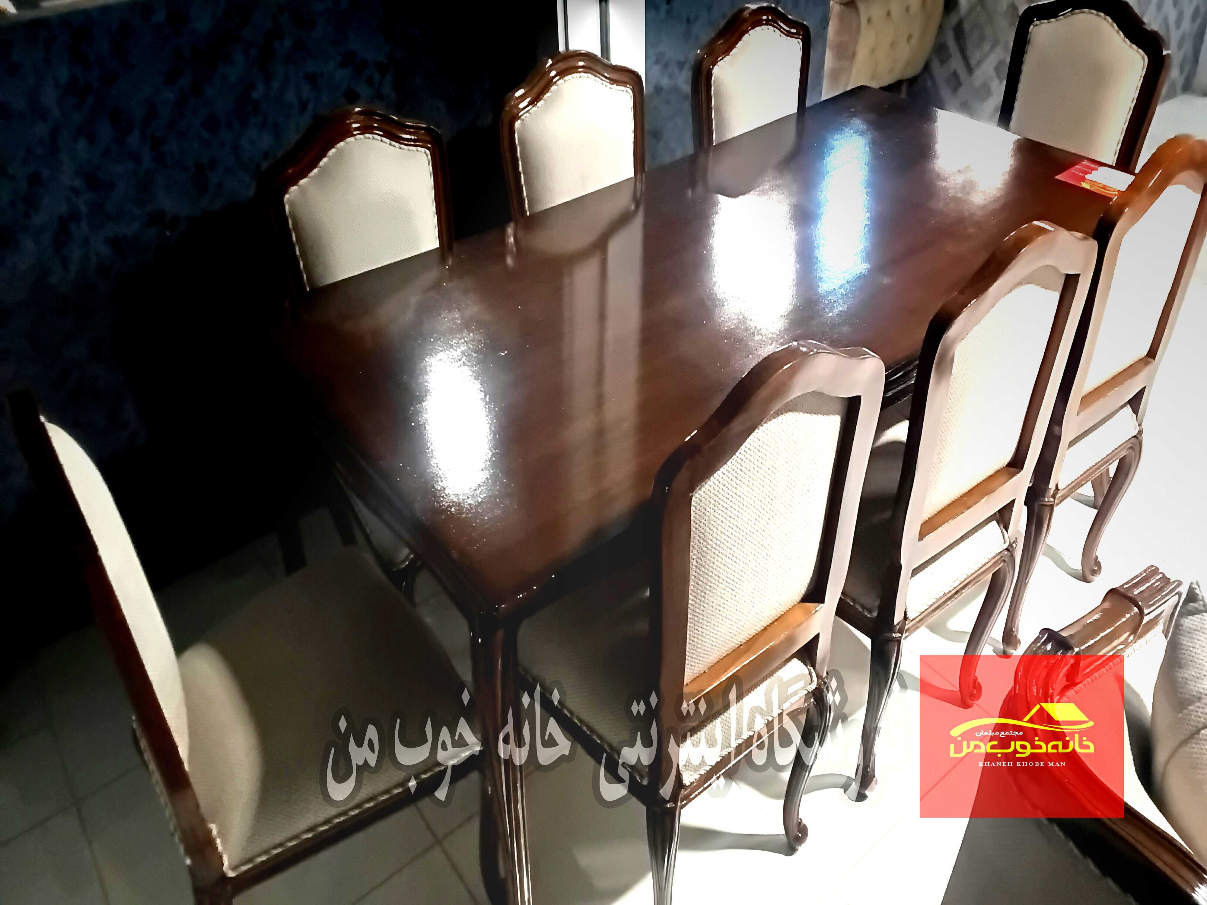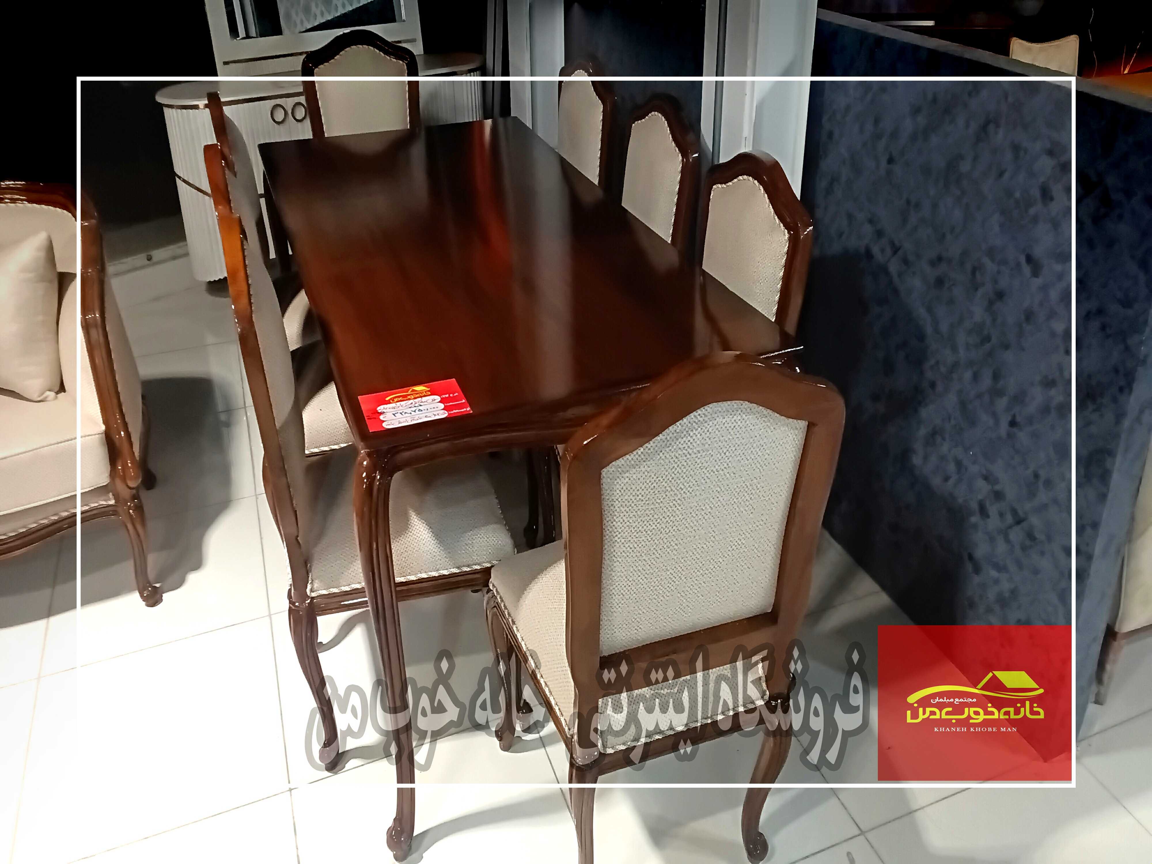اگر دنبال یک میز غذاخوری هستید که هم شیک باشه، هم باکیفیت، این مدل میز غذاخوری کلاسیک فرانسوی دقیقا همون چیزیه که دنبالش میگردید. طراحی این میز و صندلیها با منبت کاریهای ظریف و پایه های خوش فرم، همون حس اصالت و لوکسی رو به خونه میاره که همه عاشقشن. رنگ چوبش، قهوه ای که بافت طبیعی چوب رو قشنگ نشون میده و به فضای غذاخوری گرما القا میکنه.