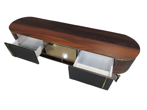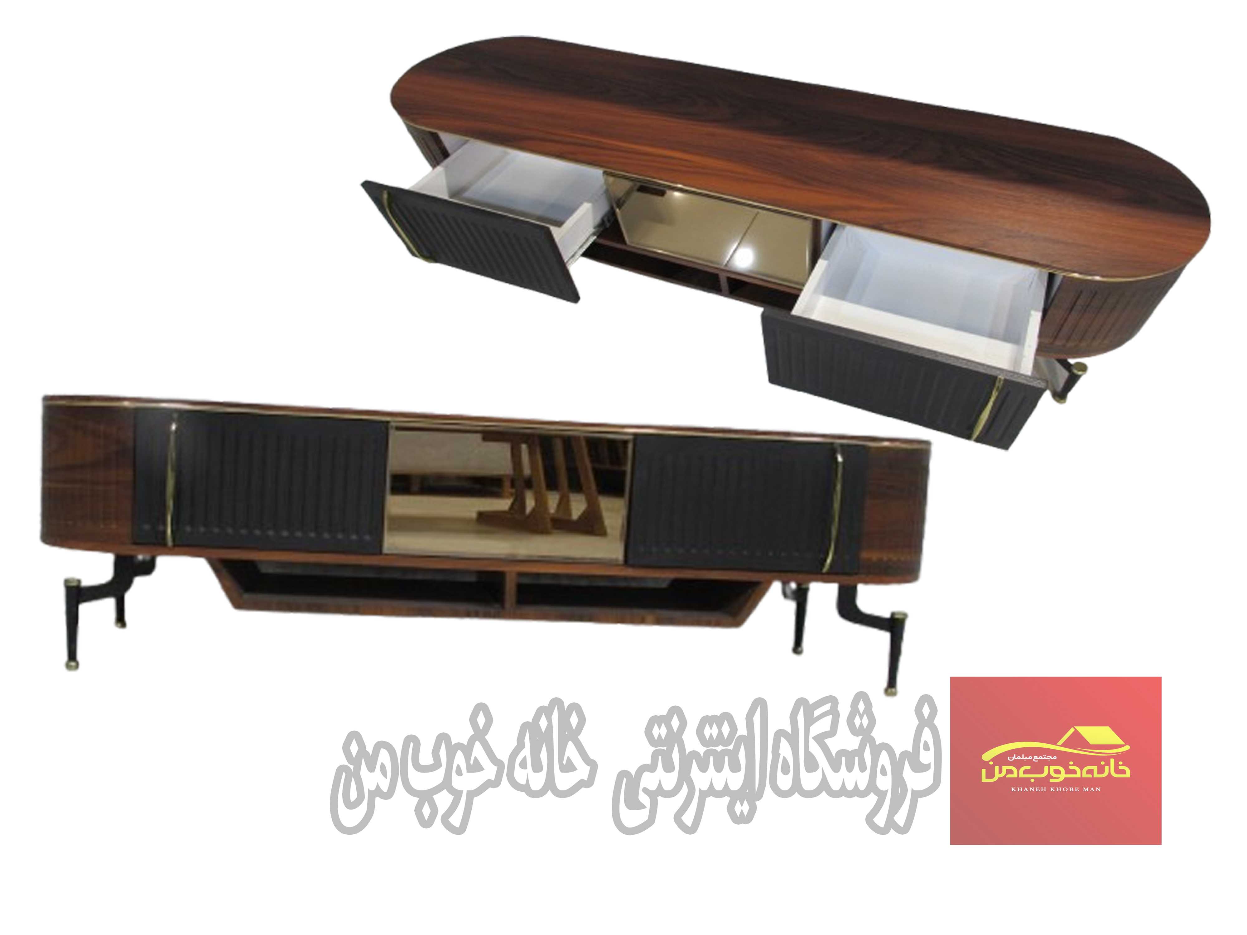 - این میز دارای کشوها و قفسههایی است که برای نگهداری وسایل مختلف مانند کنترل تلویزیون، دیسکها و سایر لوازم جانبی مناسب است. این ویژگی به حفظ نظم در فضای نشیمن کمک میکند.