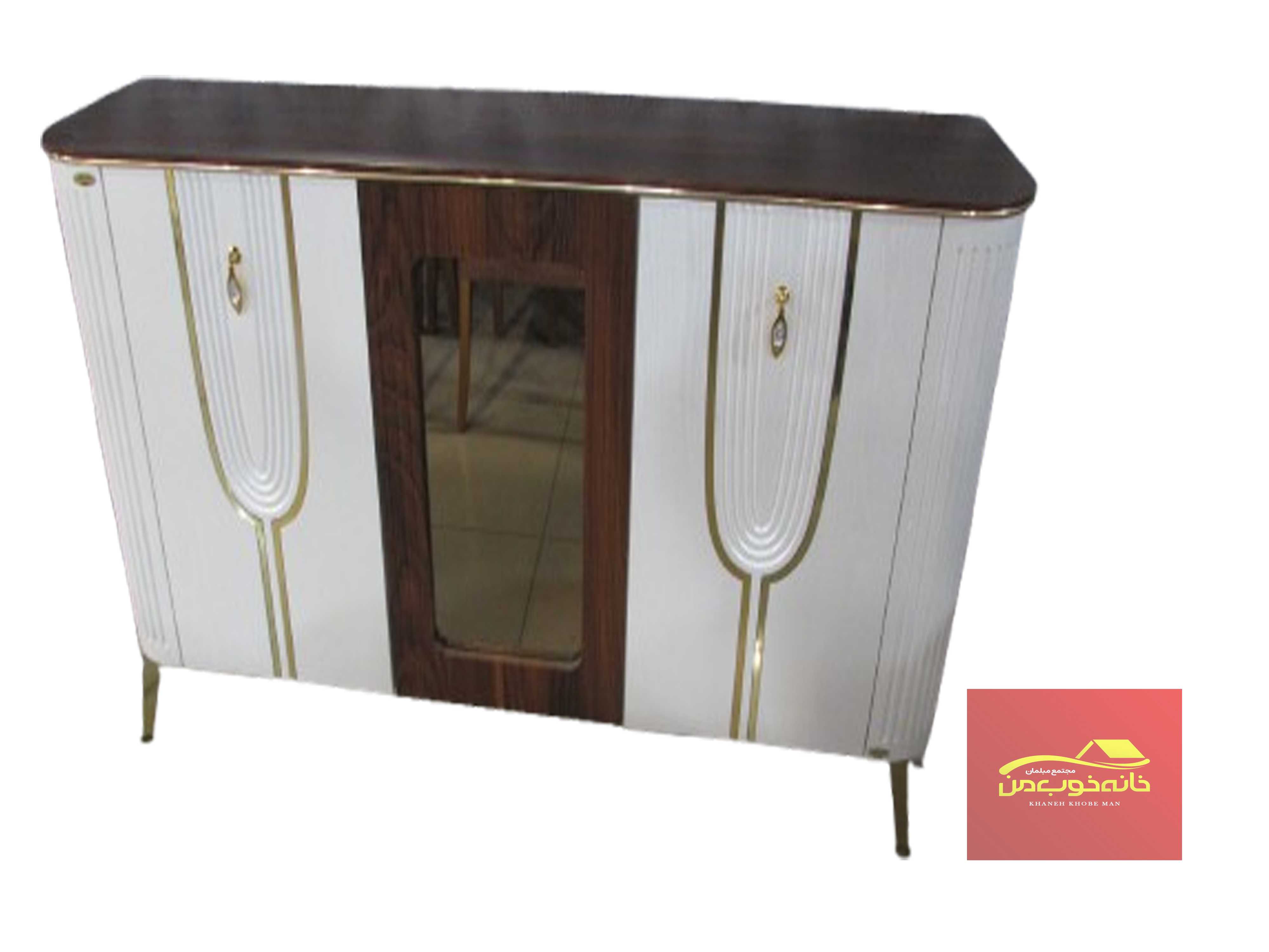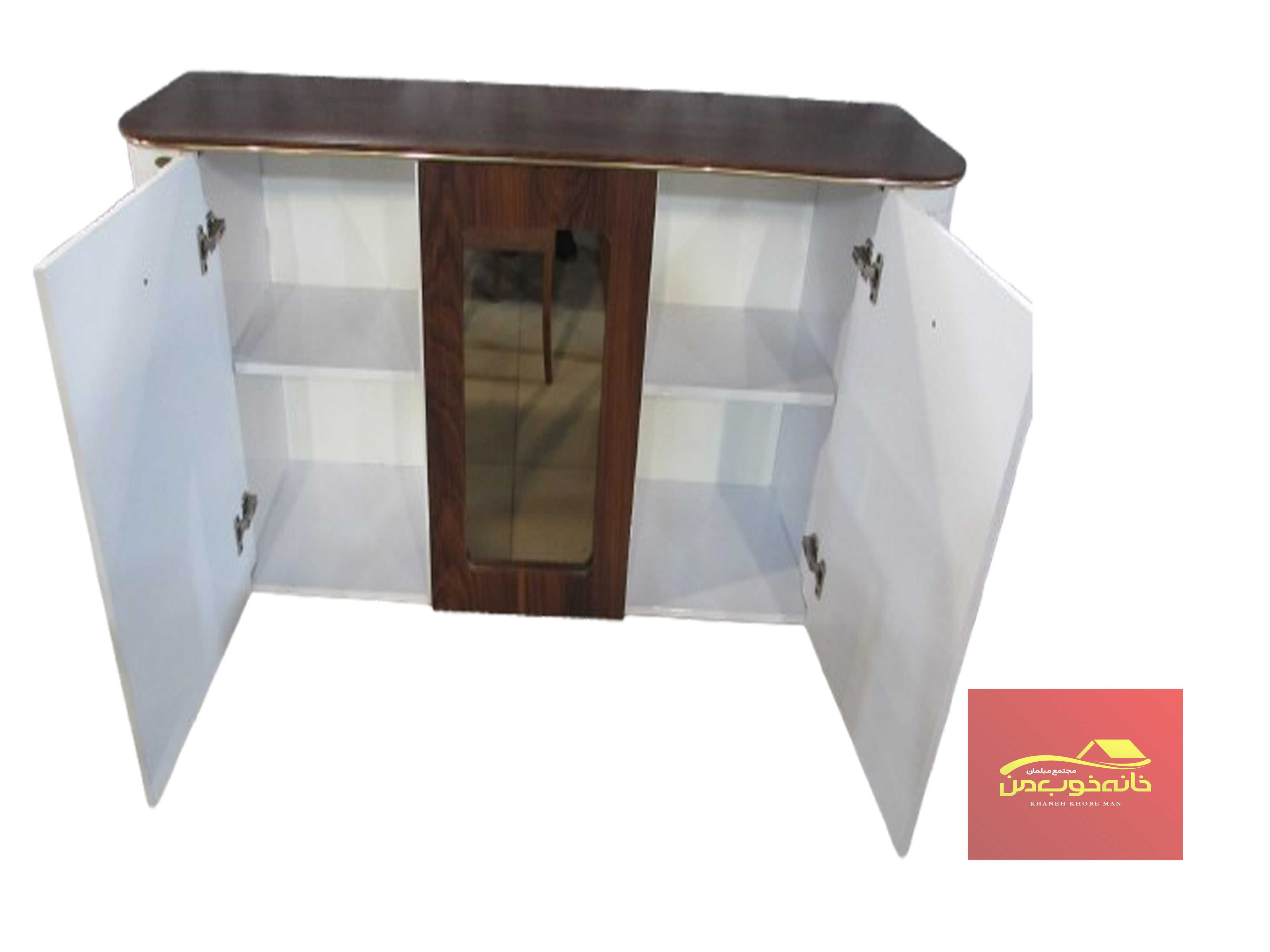 - کنسول دارای سه درب میباشد که درب میانی آن به صورت آینهای طراحی شده است. این ویژگی نه تنها زیبایی کنسول را افزایش میدهد، بلکه به بزرگتر نشان دادن فضا کمک میکند.