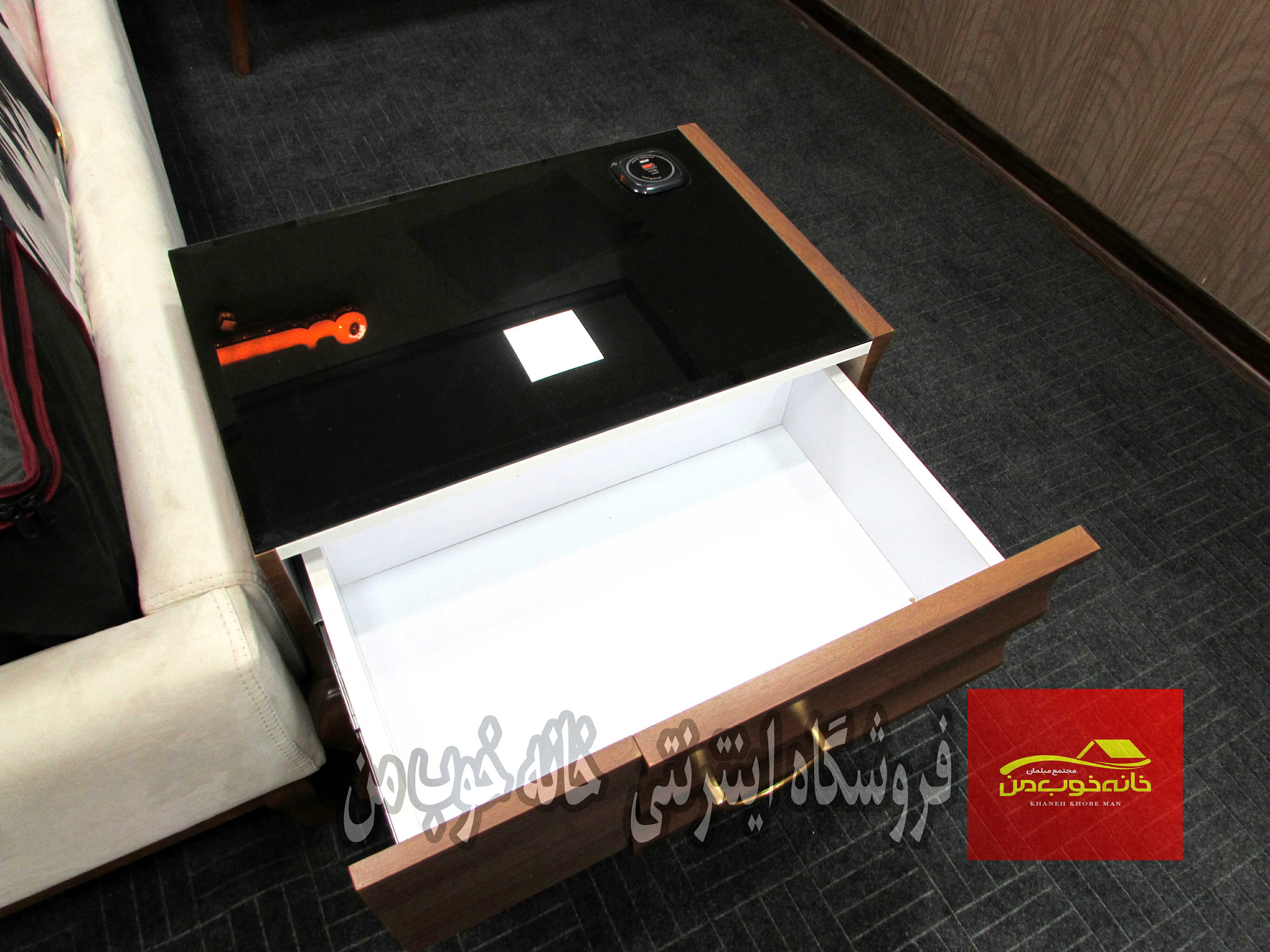 - میز کنار تختی (پاتختی) با طراحی هوشمندانه: پاتختی هماهنگ با طراحی کلی سرویس، مکانی ایدهآل برای قرار دادن کتاب، چراغ مطالعه یا لیوان آب قبل از خواب است. طراحی یکپارچه آن، تکمیلکننده فضایی دلنشین و کاربردی در کنار تخت شماست. (در عکس، یک میز عسلی یا پاتختی با رویه شیشهای تیره دیده میشود که میتواند برای استفاده کنار تخت یا حتی به عنوان یک میز پذیرایی کوچک در نظر گرفته شود. اگر این قطعه همراه سرویس خواب است، باید بر کاربرد آن به عنوان پاتختی تاکید شود.)