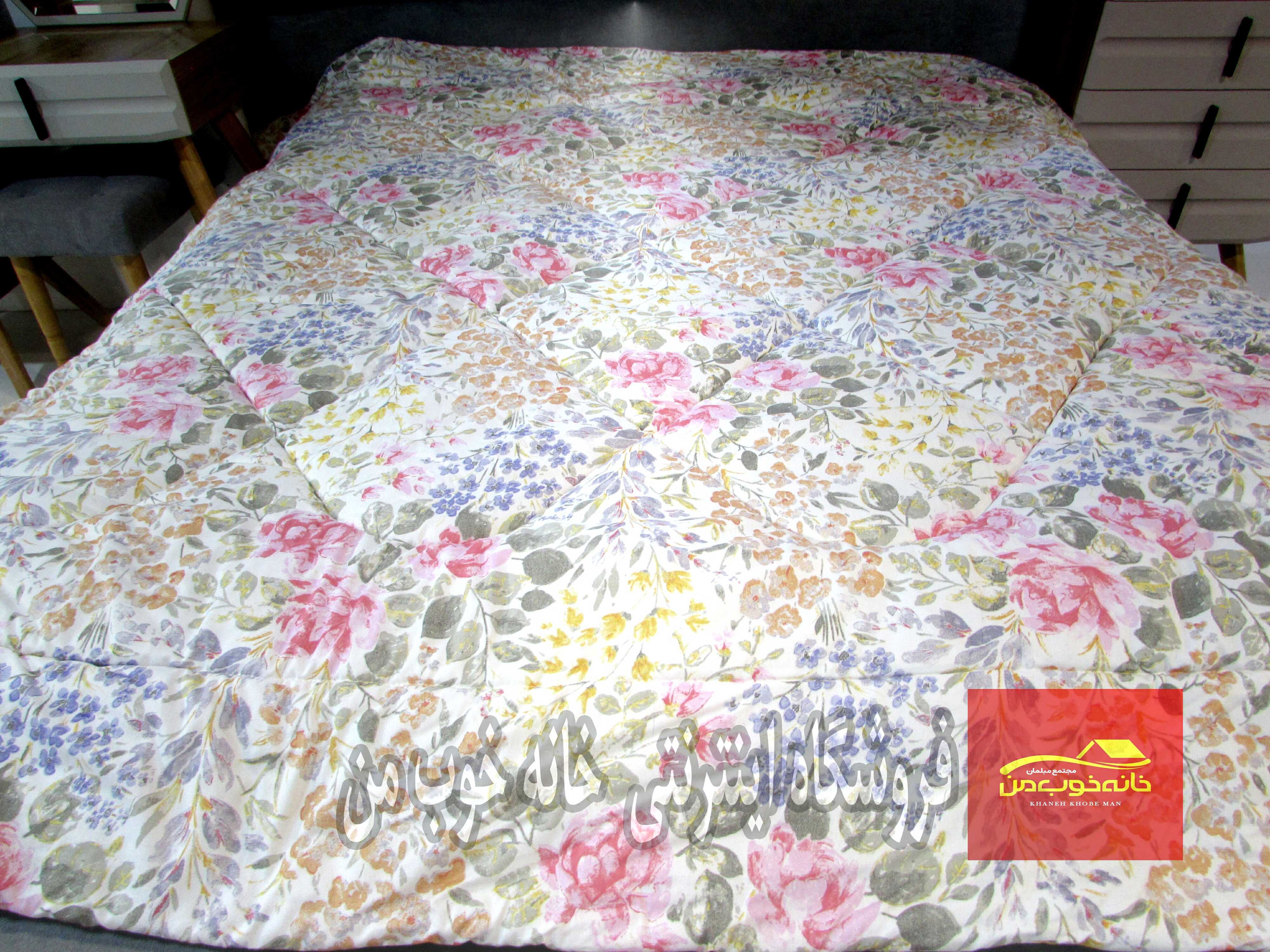- روتختی دارای طراحی گلدار با رنگهای ملایم و شاداب است. این الگوها، شامل گلهای بزرگ و کوچک در رنگهای مختلف (مانند صورتی، زرد، آبی و سبز) هستند که به اتاق خواب جلوهای زیبا و شاداب میبخشند. طراحی این روتختی به راحتی با سایر عناصر دکوراسیون هماهنگ میشود.