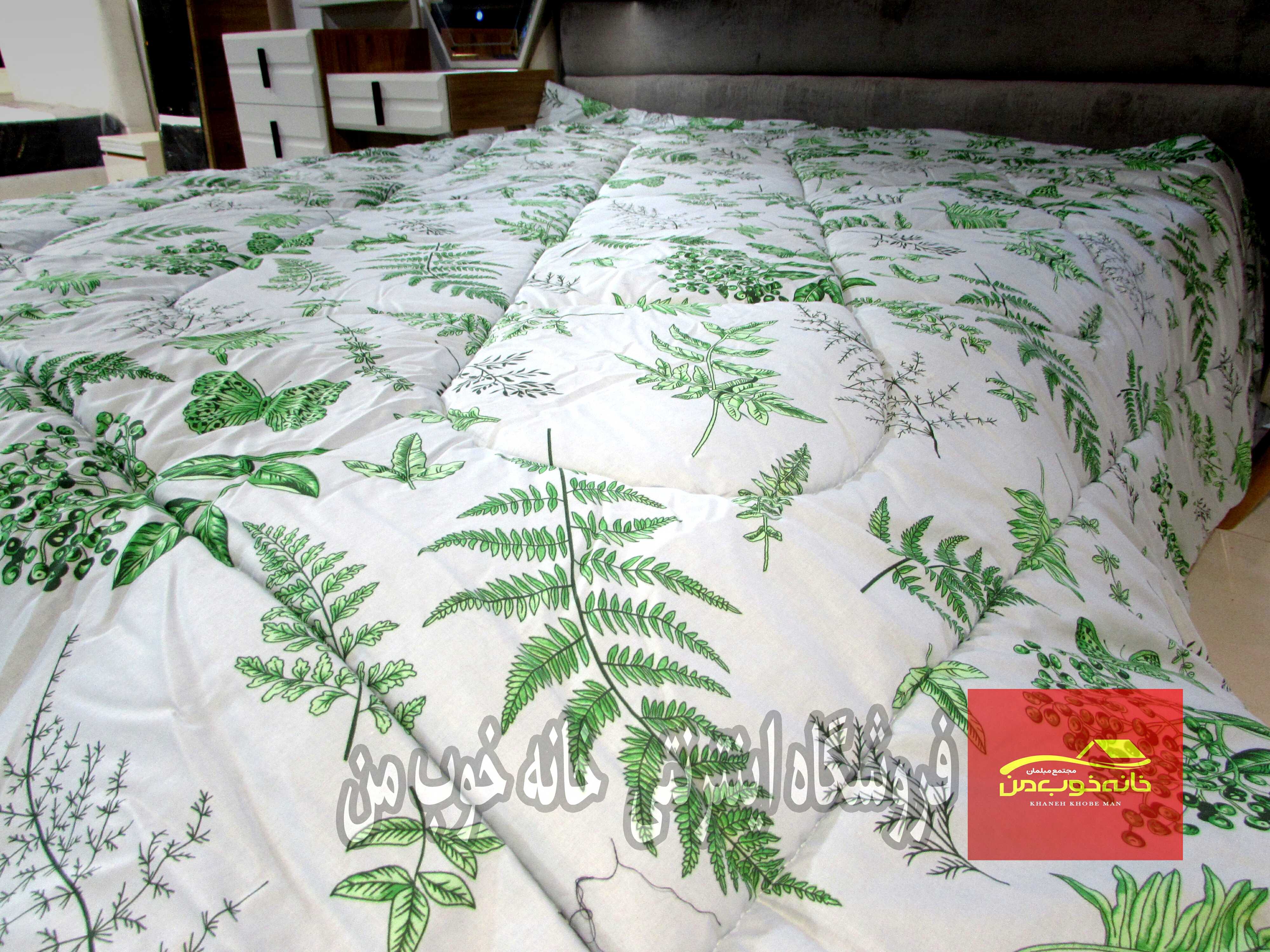 - رو تختی دو رو به شما این امکان را میدهد که بسته به سلیقه یا نیاز خود، یکی از دو طرف را انتخاب کنید. این رو تختی معمولاً یک طرف با طراحی سبز و الگوهای گیاهی و طرف دیگر با زمینه سفید طراحی شده است که میتواند به راحتی با دکوراسیون اتاق خواب شما هماهنگ شود.