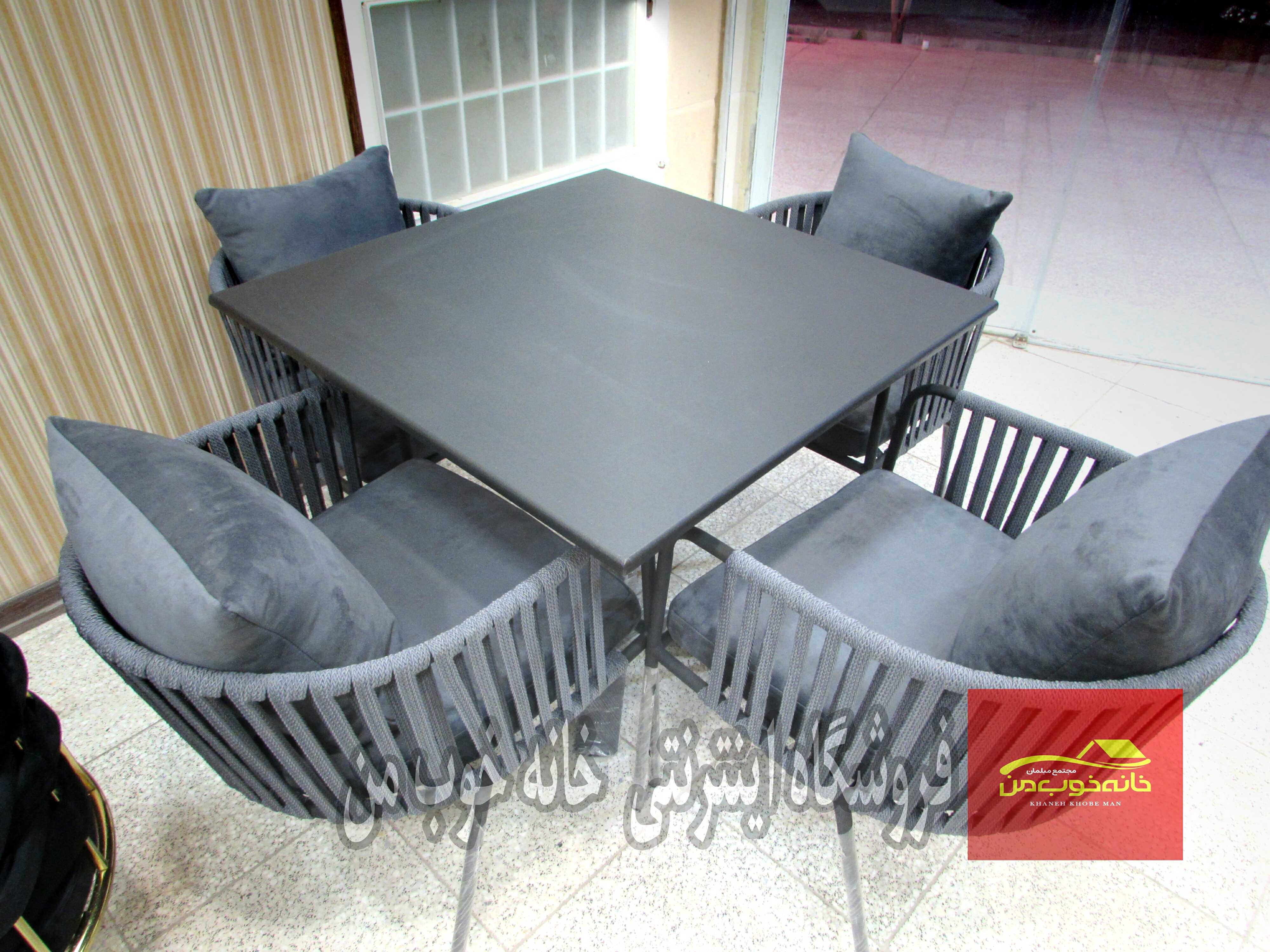 - این سرویس شامل یک میز و چهار صندلی با طراحی خاص و بافت طنابی است که ظاهری منحصر به فرد و زیبا به آن میبخشد. طراحی مدرن آن به خوبی با دکوراسیونهای معاصر هماهنگ میشود.