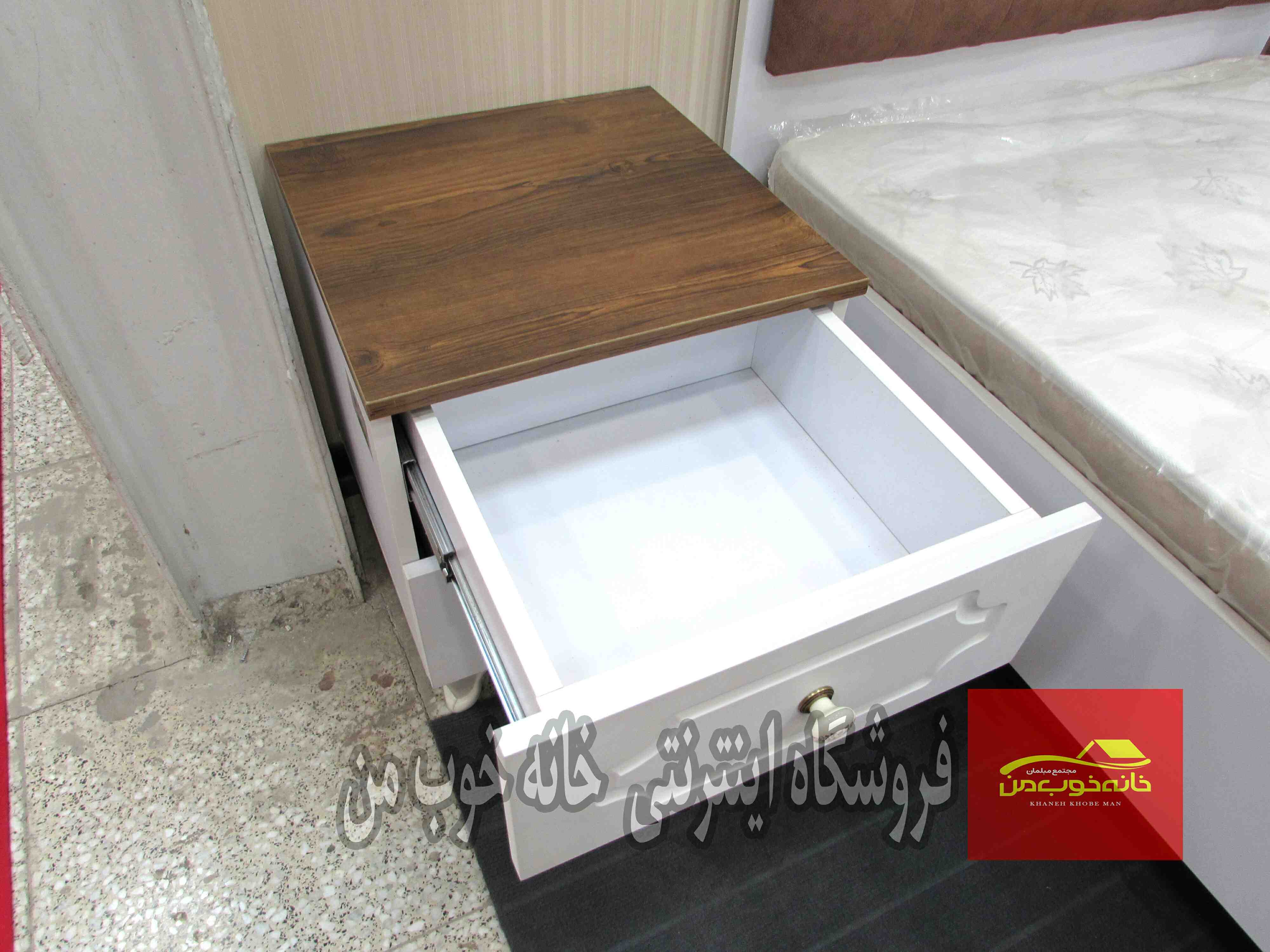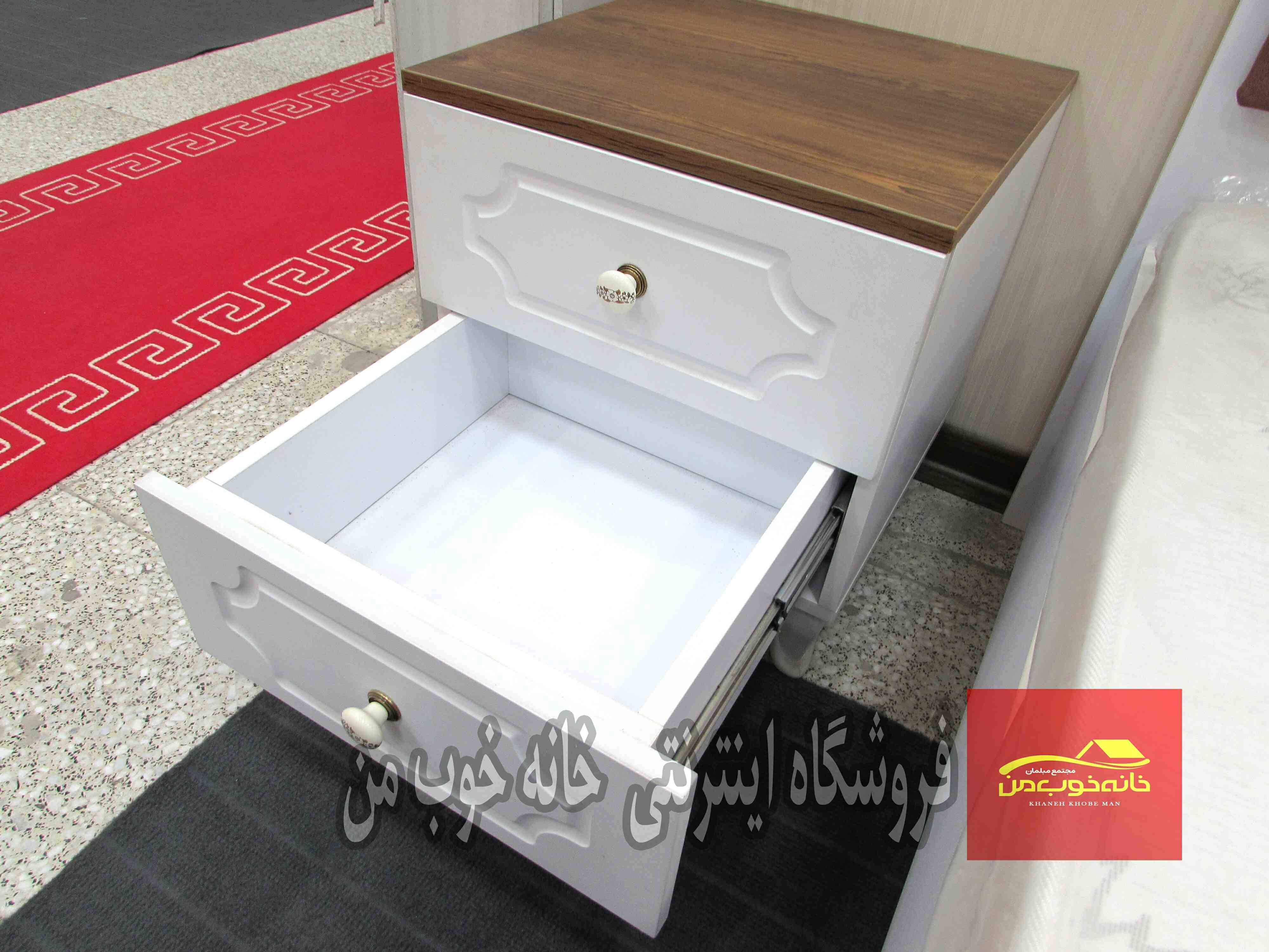 - پاتختی مدل آلما دارای طراحی مدرن و زیباست که به راحتی با دکوراسیونهای مختلف اتاق خواب هماهنگ میشود. ترکیب رنگ سفید با سطح چوبی قهوهای برای رویه پاتختی، جلوهای شیک و جذاب به آن میبخشد.