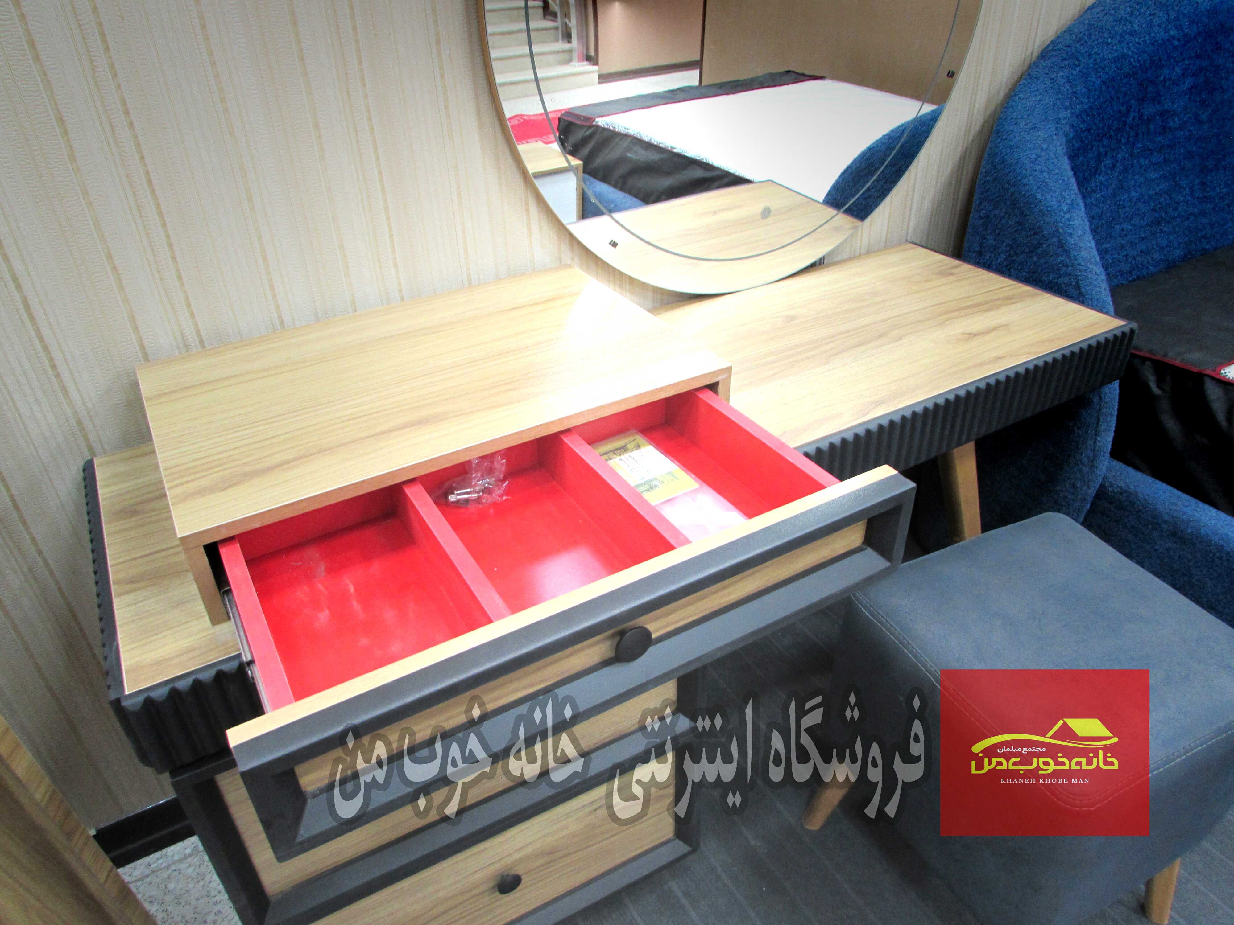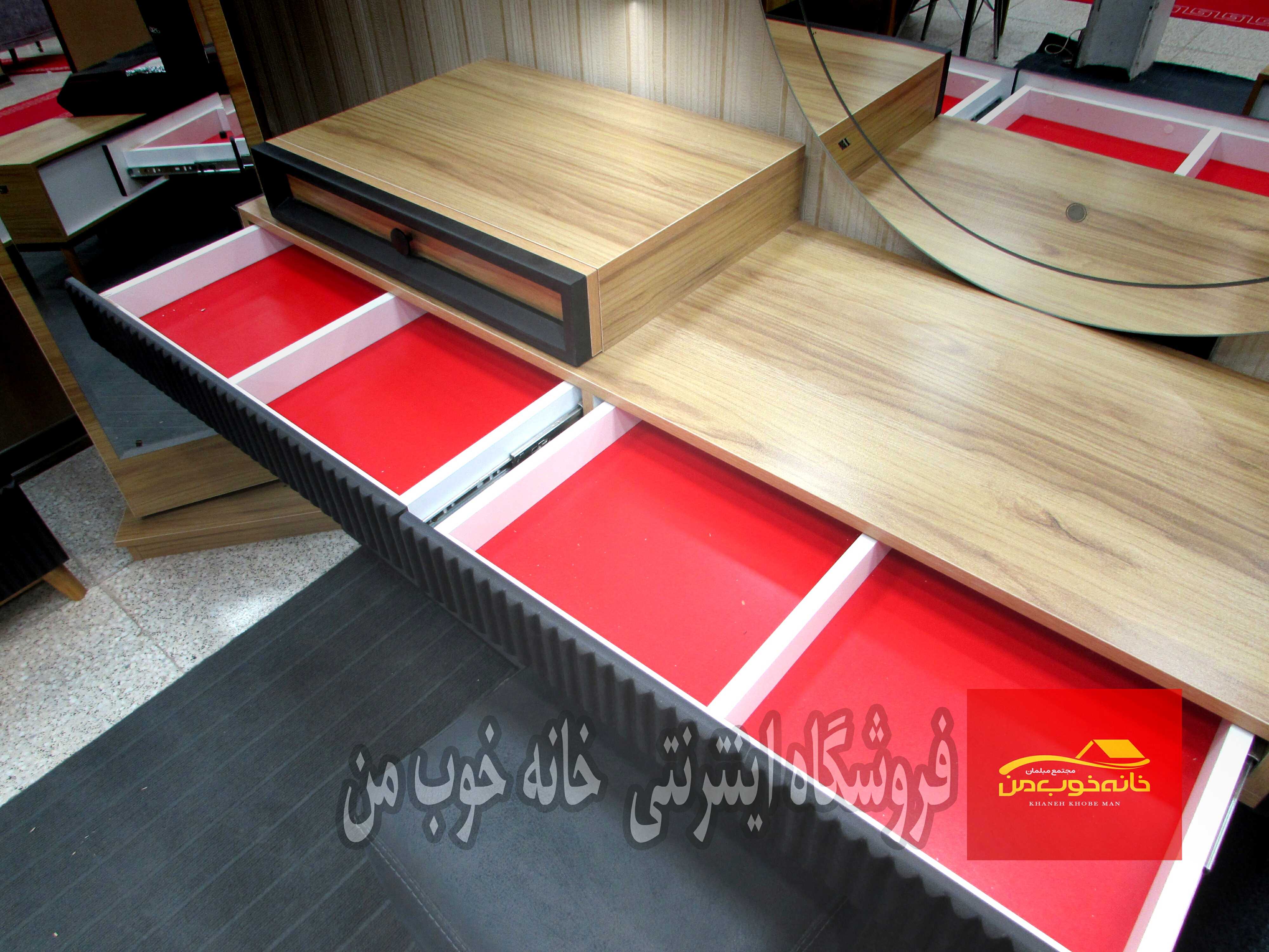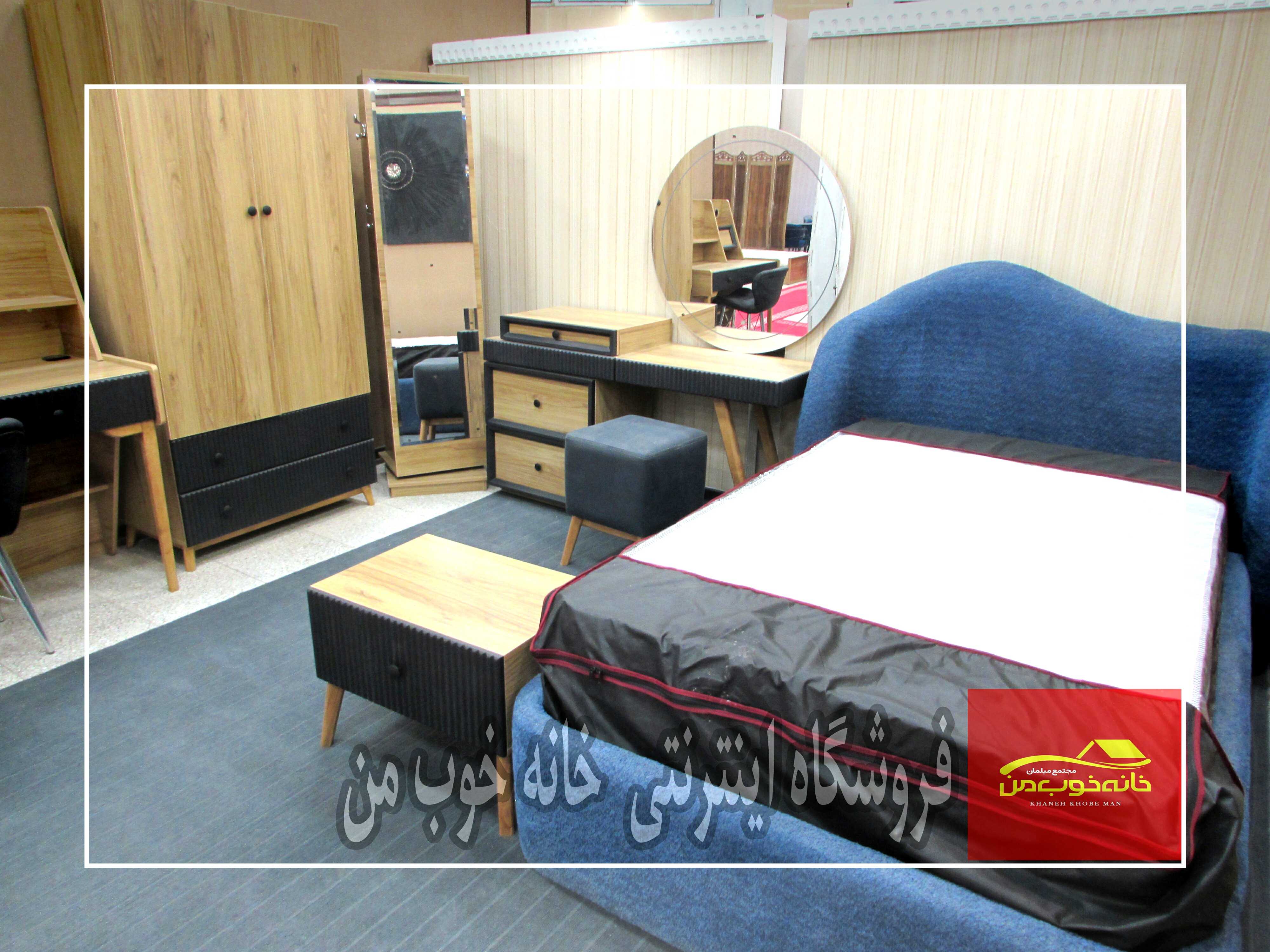 - سایر ویژگیها: دارای نوار پی وی سی ضخیم، آینه اردکان با نور مخفی، کشو جواهرات و کشو مخفی در میز آرایش، USB بر روی پاتختی.
