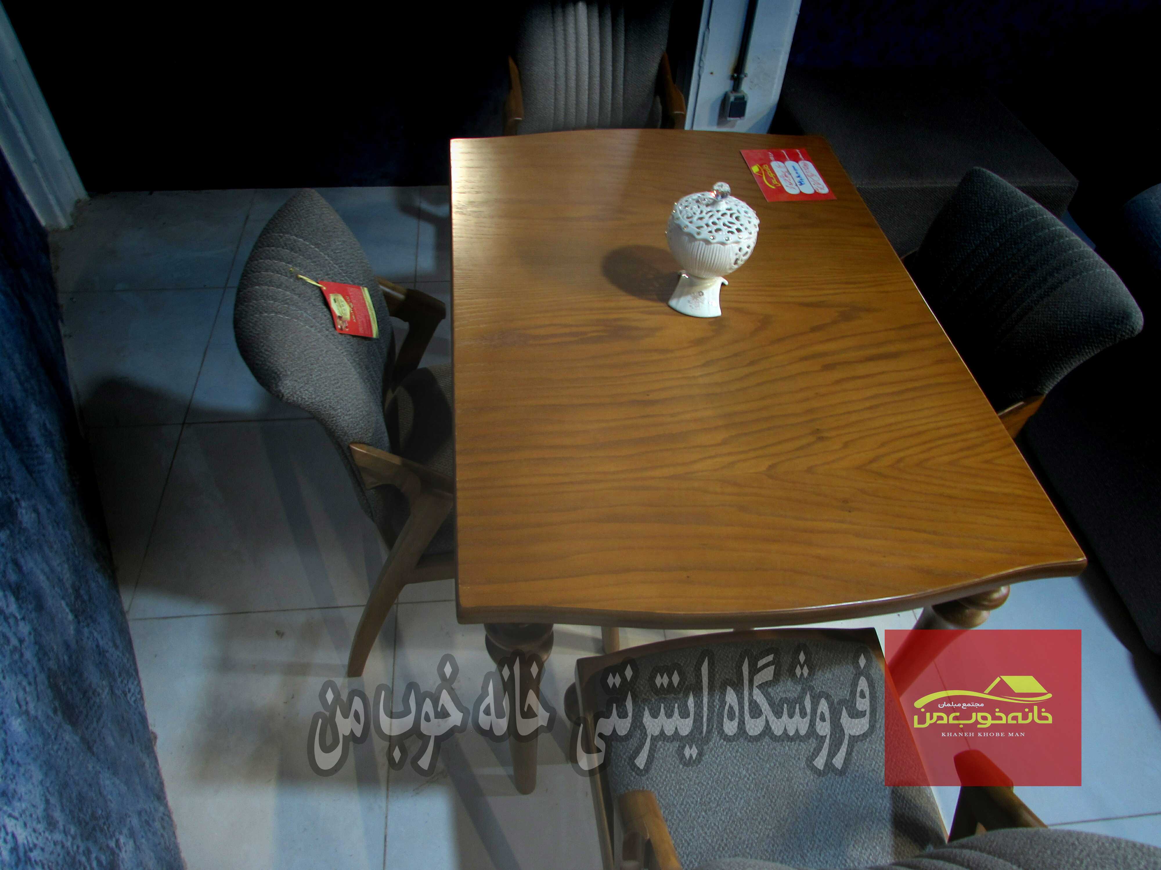 این سرویس غذاخوری ۴ نفره که از چوب راش ساخته شده و صندلیهایش با پارچه نانو پوشیده شده است.